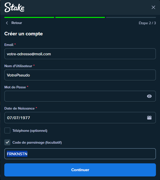Plusieurs localisations permettant d’accéder à Stake en mode gratuit.